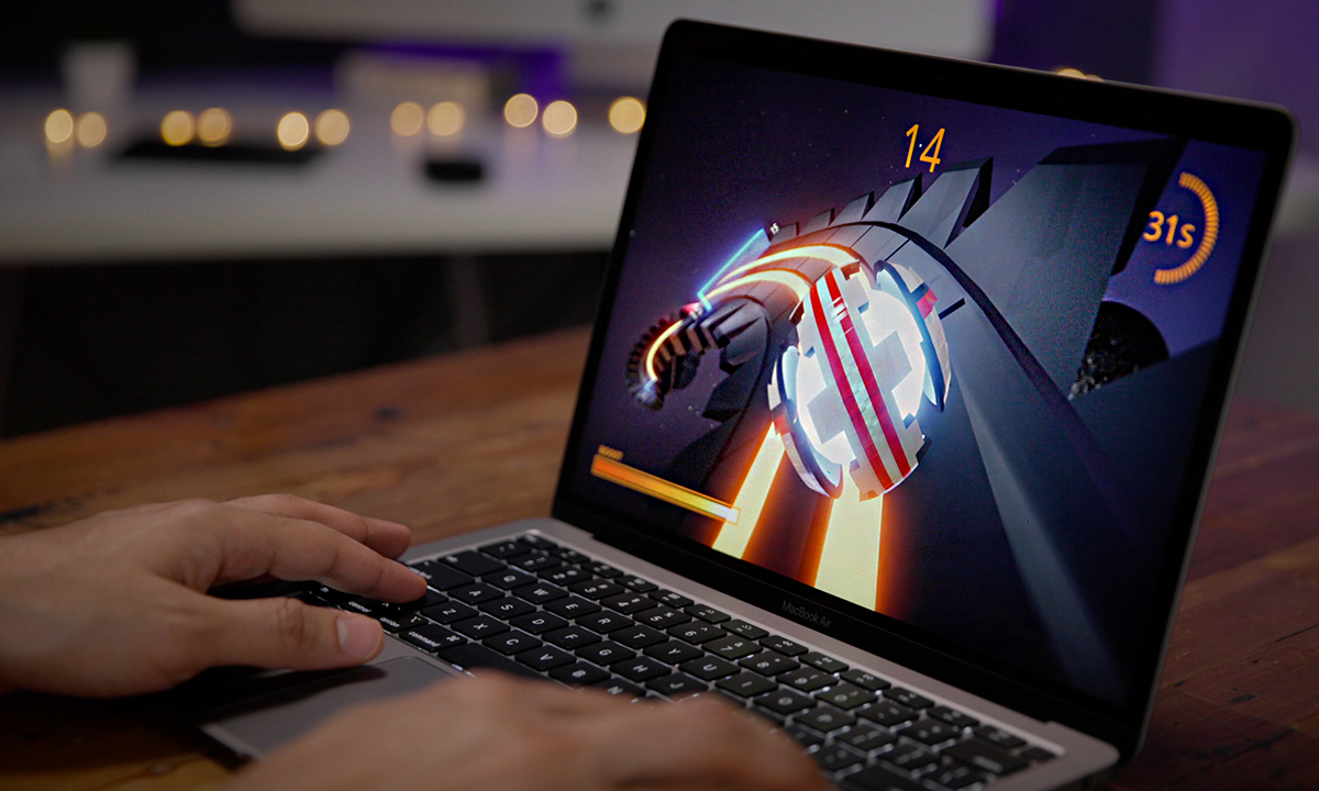 MacBook Air M1 აღჭურვილია სუპერ კომფორტული “Scissor Switch” Magic Keyboard–ით. ჩვეულებრივ კლავიატურასთან შედარებით მათ აქვთ ნაკლები სისქე და რბილი შეხება. უნდა აღინიშნოს ისიც, რომ კლავიატურა ძალიან ჩუმია, რაც კიდევ ერთი დადებითი თვისებაა.