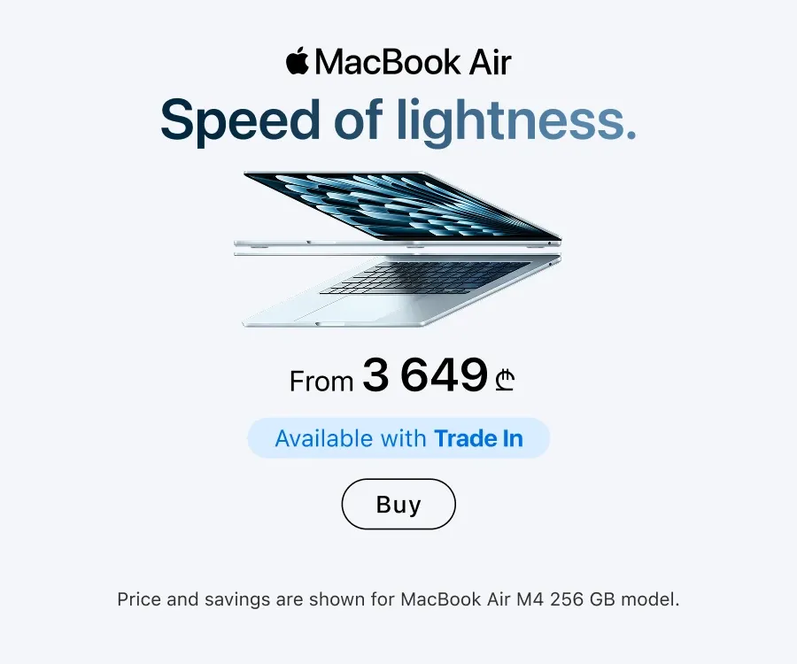 The iSpace online store and physical locations offer a full range of official Apple products. Here you can find a new iPhone — from basic to professional versions — choose a compact MacBook, a stationary iMac, or build a PC from Studio Display and Mac Studio.